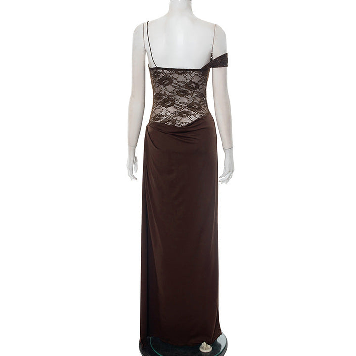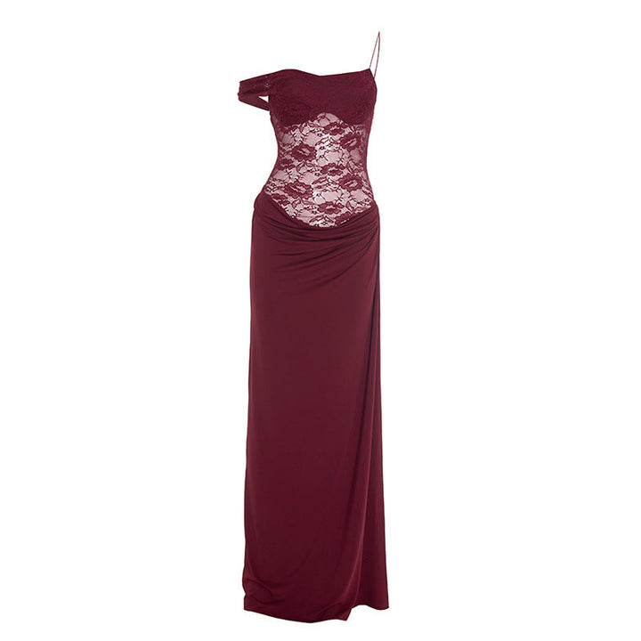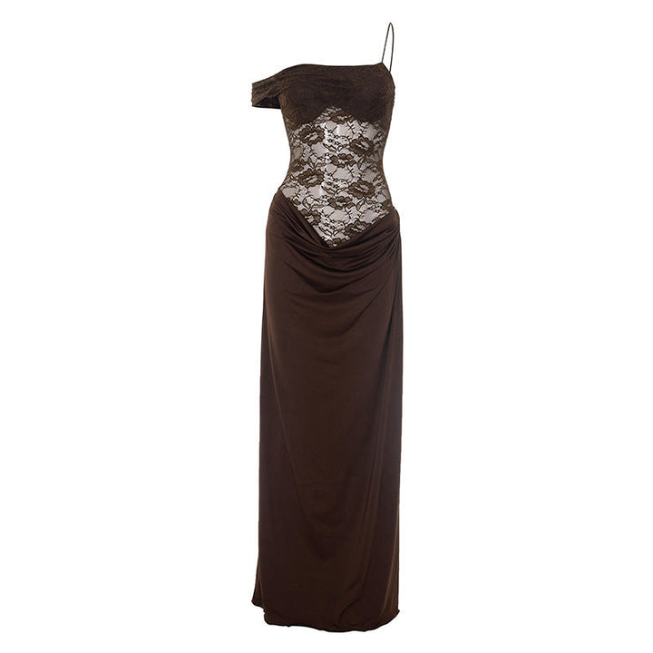 Ruched lace irregular button cami maxi dress