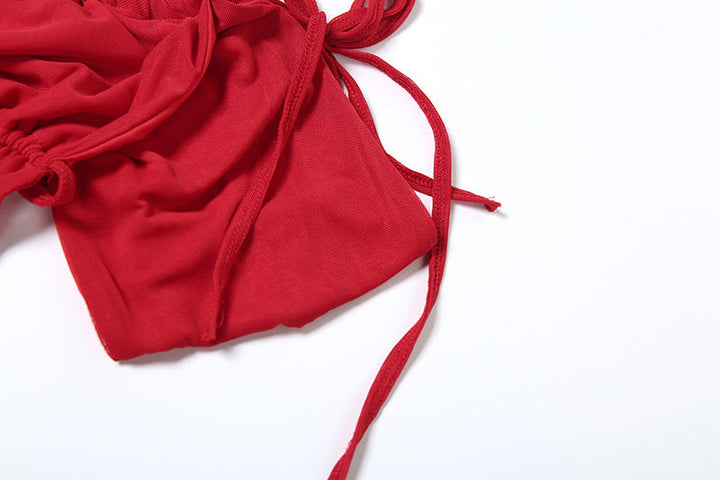 Self tie backless ruched mesh top