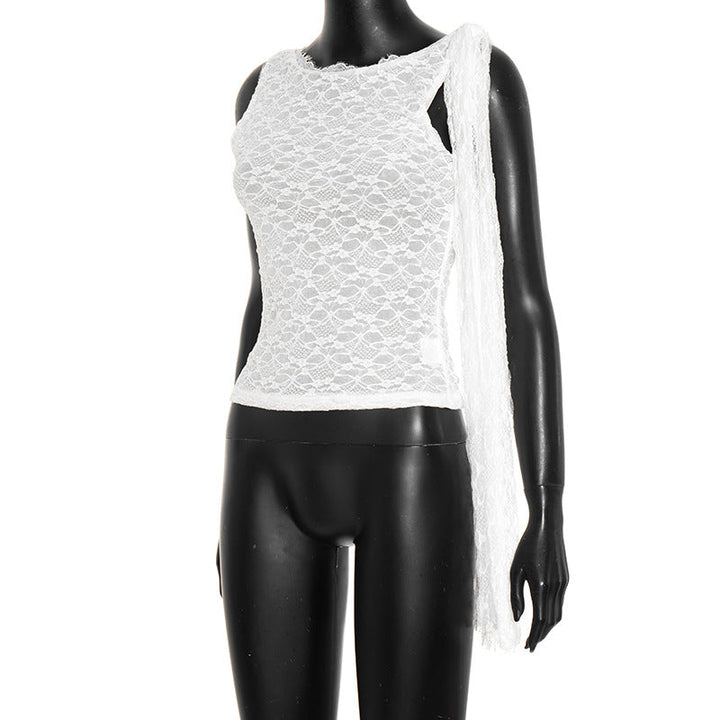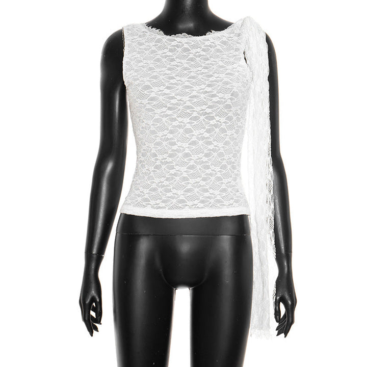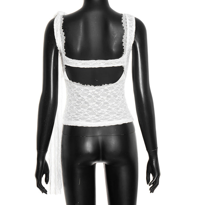 Sleeveless backless lace crewneck top