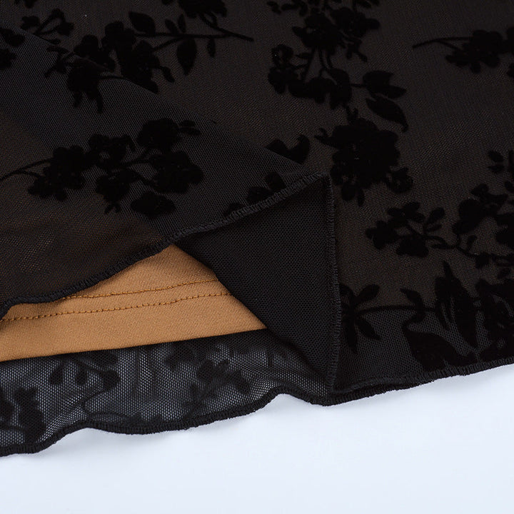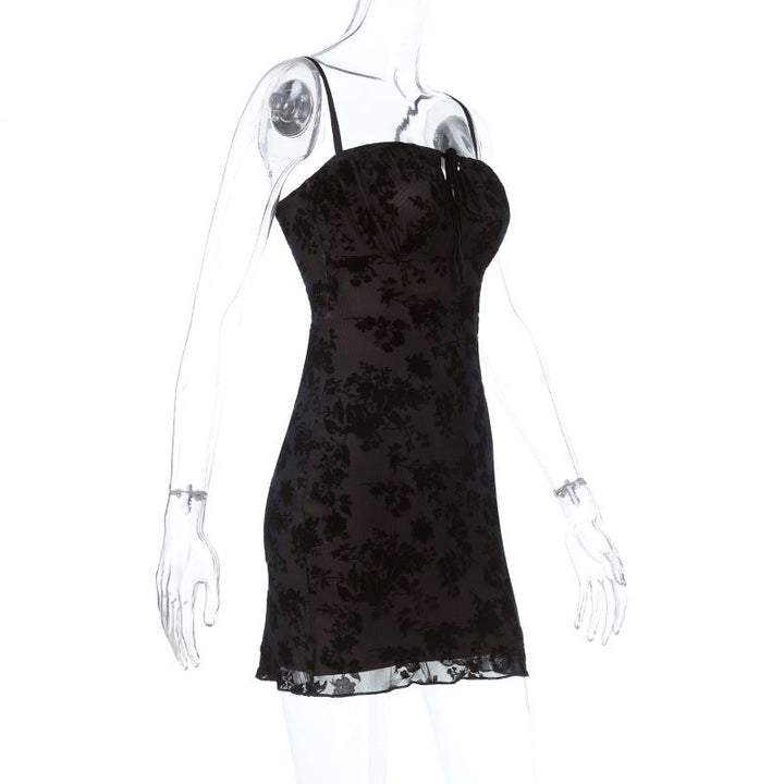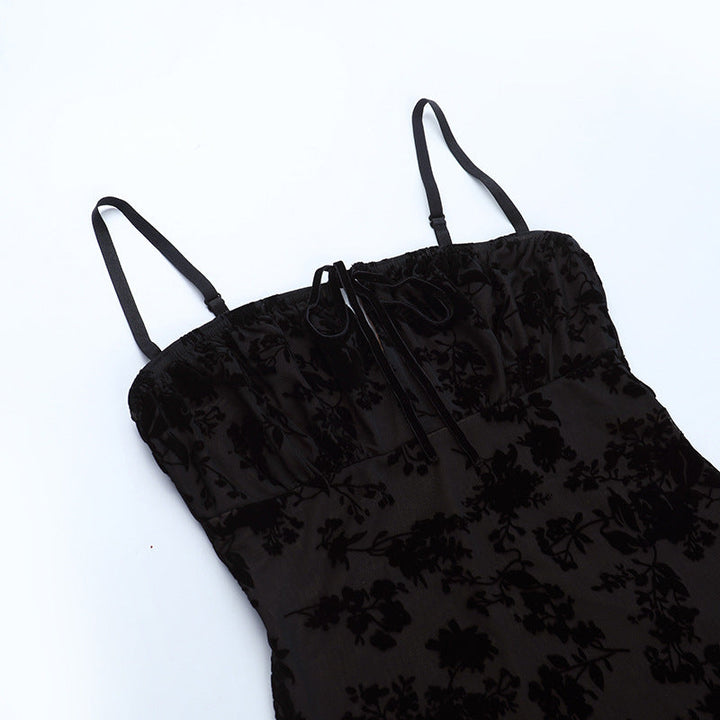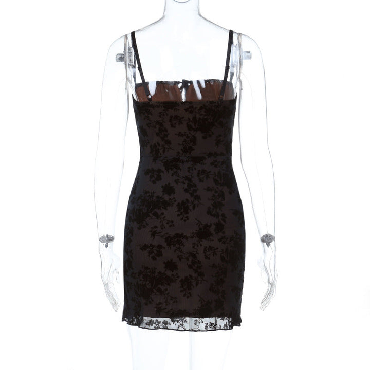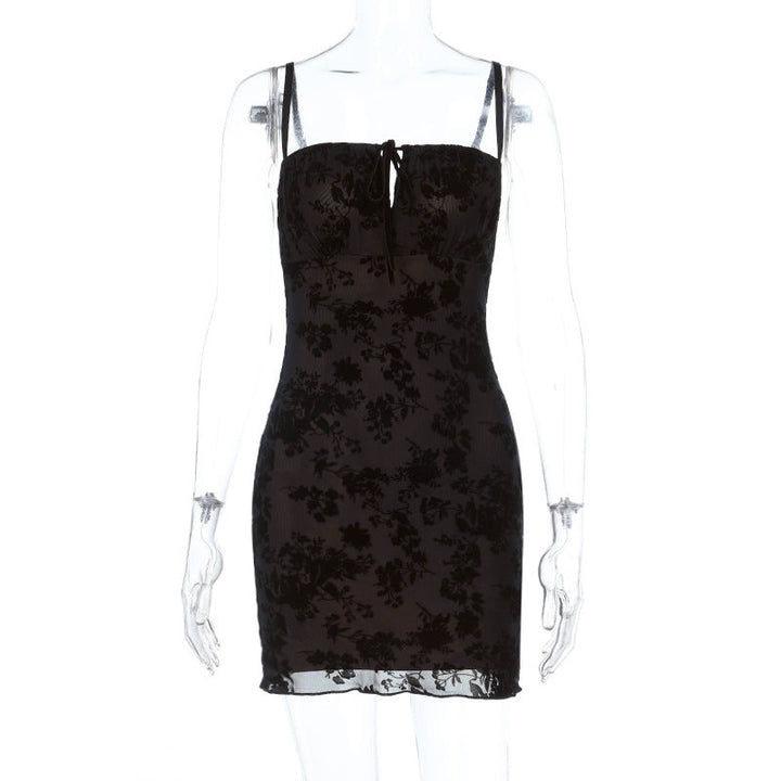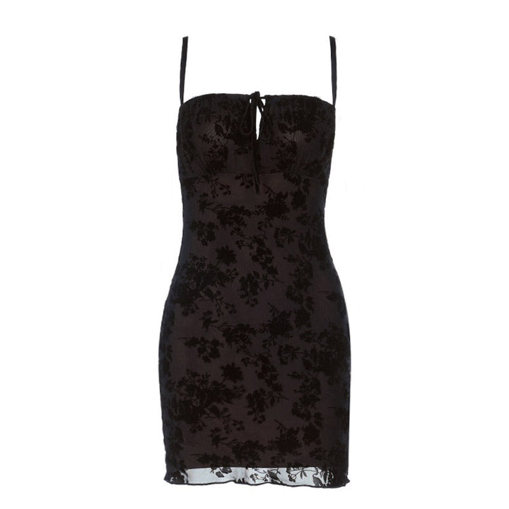 Square neck self tie hollow out print cami mini dress