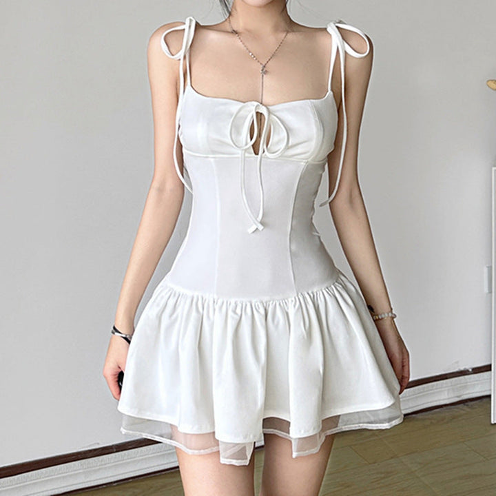 Square neck self tie ruffle cami mini dress