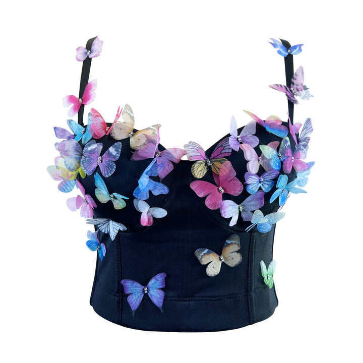 V neck butterfly applique backless cami top