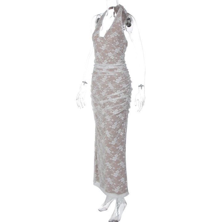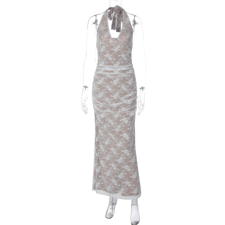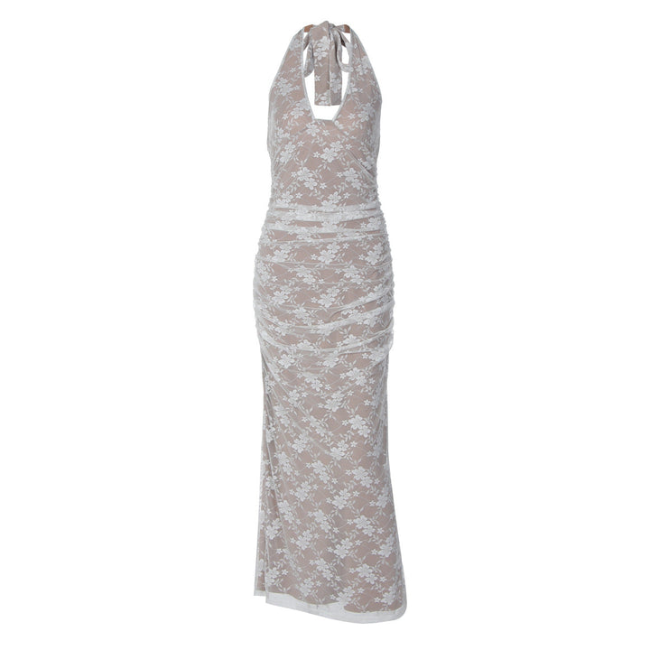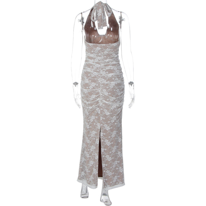 V neck halter self tie slit backless maxi dress