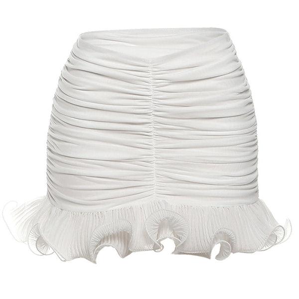 バックルジップアッププリーツローライズPUレザーミニスカート