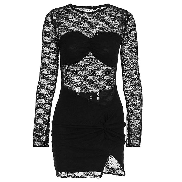 フィッシュネットロングスリーブ中空シースルーミニドレスゴスオルタナティブダークウェーブファッションゴスエモダークウェーブファッション
