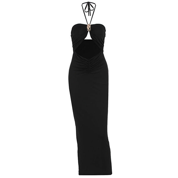 メタルチェーンシースルーOリングホルターバックレスクロップトップ