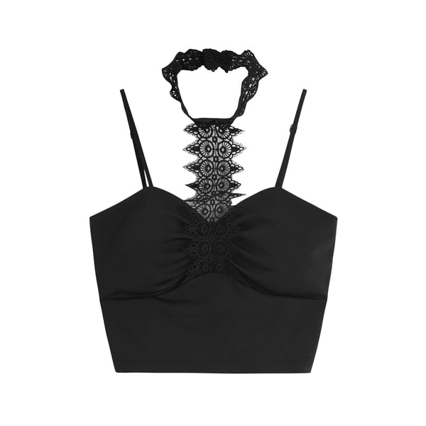 Vネック ハートネック 無地 レースアップ ジップアップ レース裾 キャミソール トップス y2k 90年代リバイバル テクノファッション