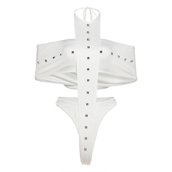 くり抜き不規則な片肩ソリッドグローブボディスーツy2k90年代リバイバルテクノファッション