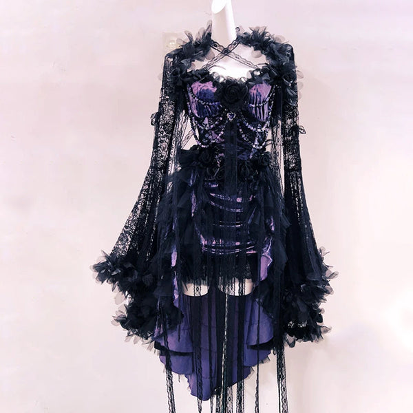 ジップアップ レースアップ パッチワーク レース フリル ミニスカート ゴス オルタナティブ ダークウェーブ ファッション ゴス エモ ダークウェーブ ファッション