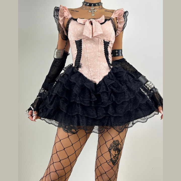 Bowknot lace hem ruffle mini dress