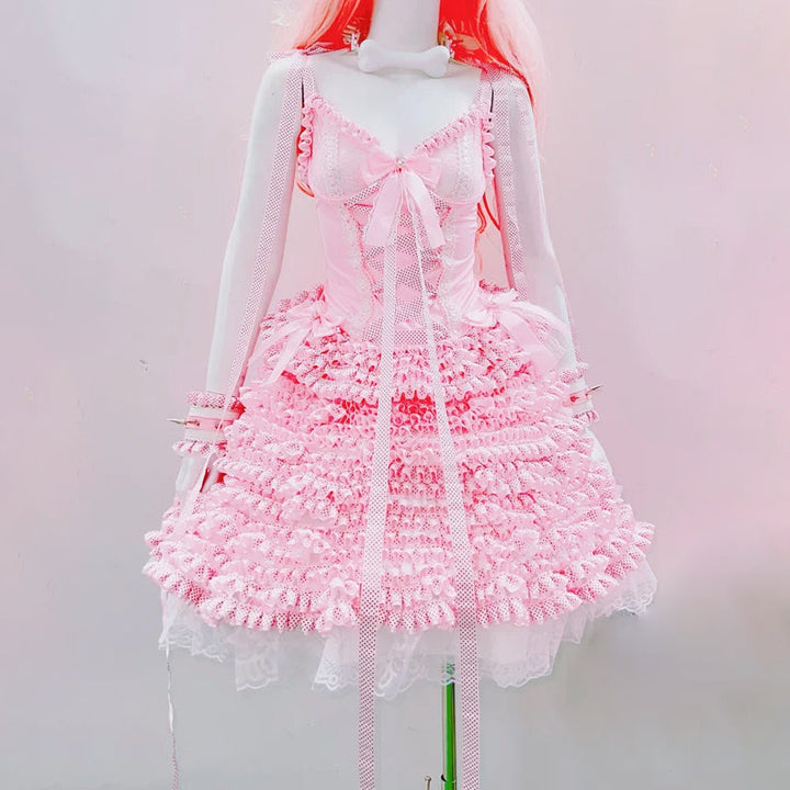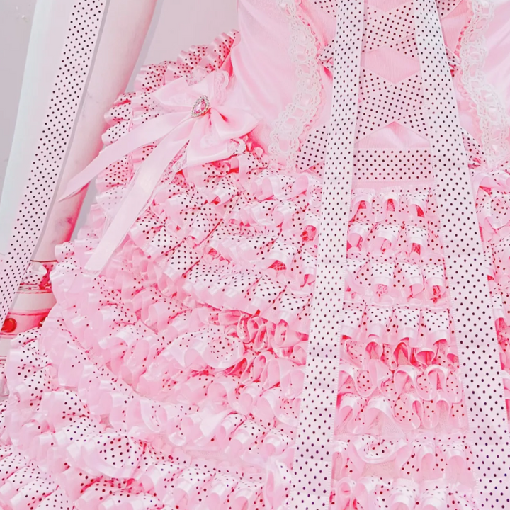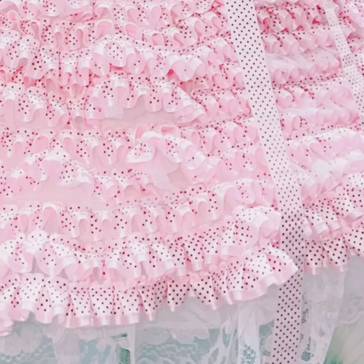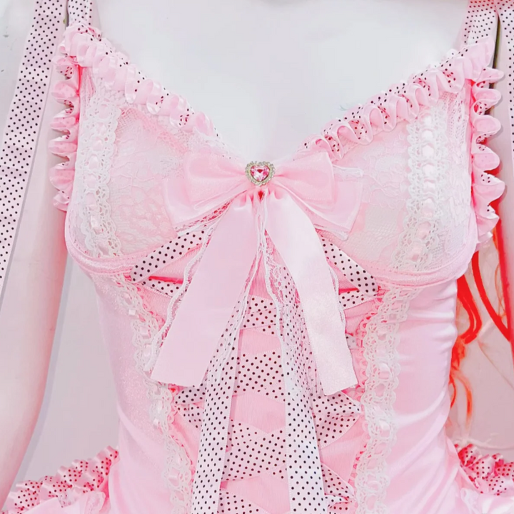 Bowknot ruffle v neck lace hem cami midi skirt set