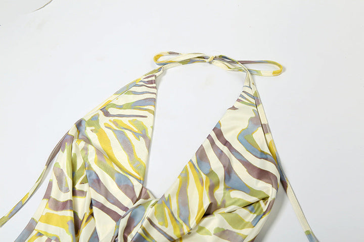 Cowl neck print halter self tie slit maxi dress