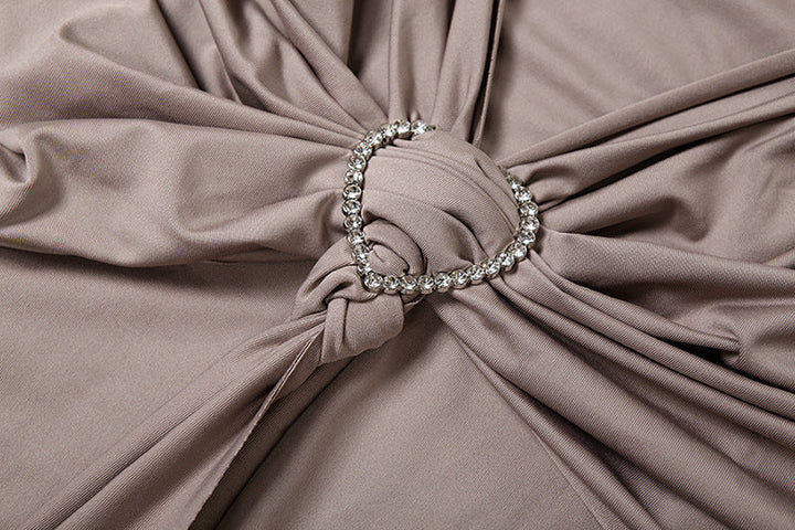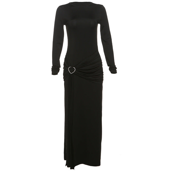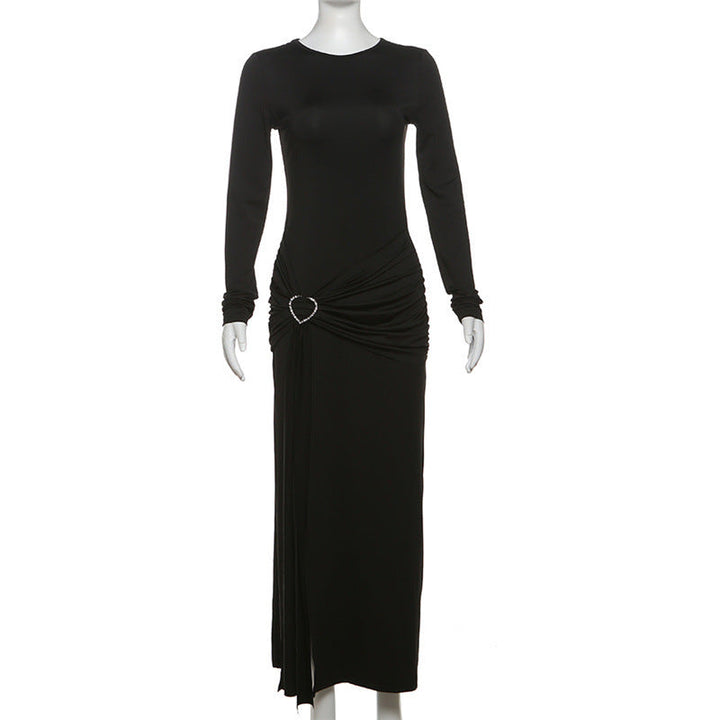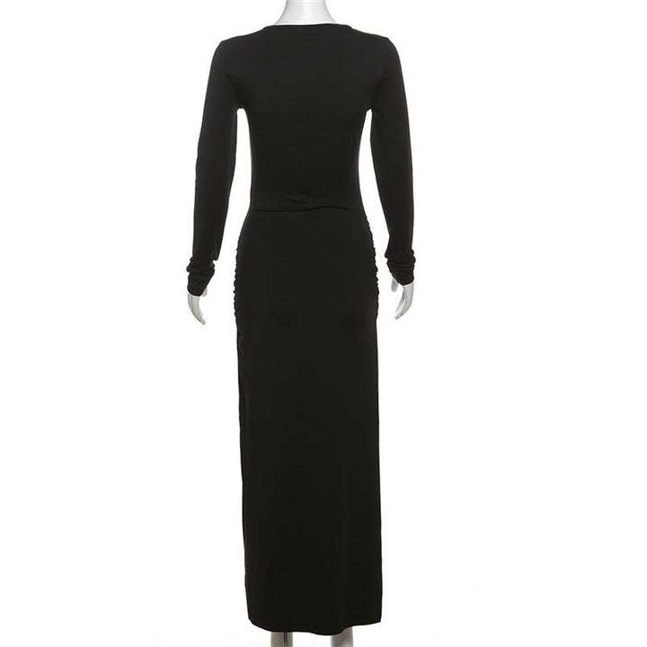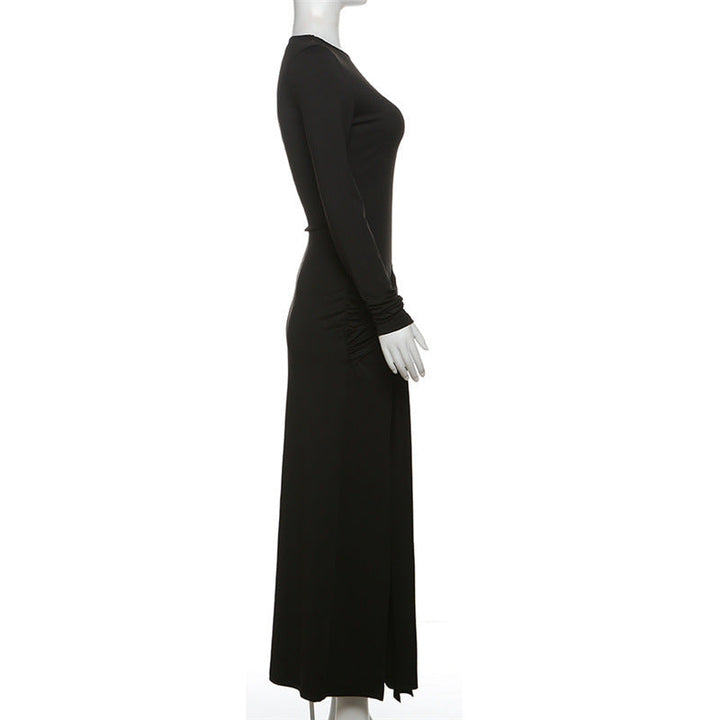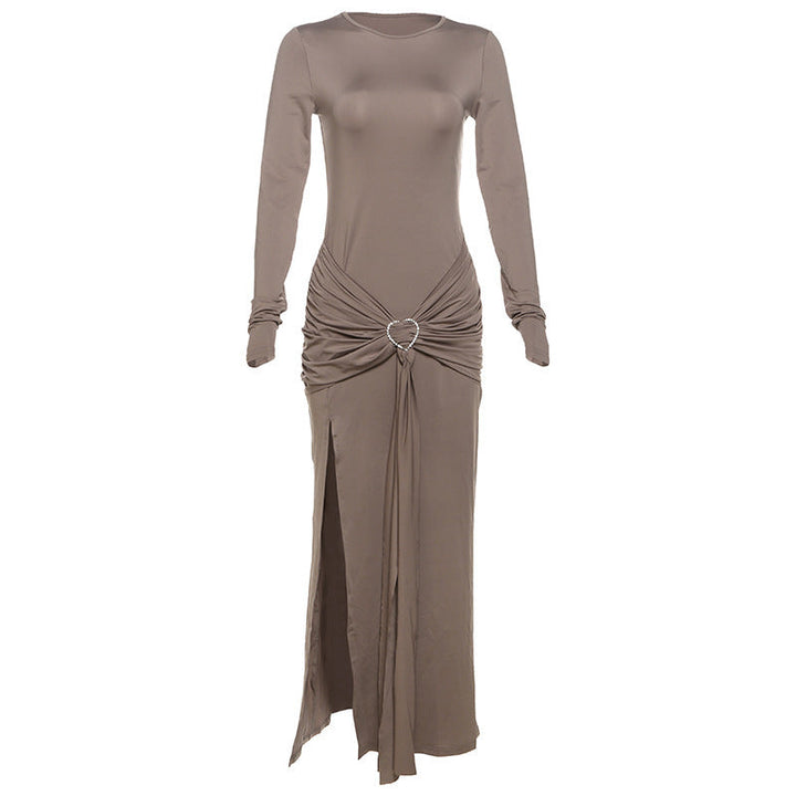 Crewneck long sleeve ruched slit maxi dress