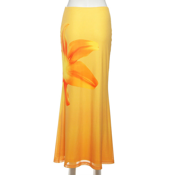 Flower print gradient maxi skirt