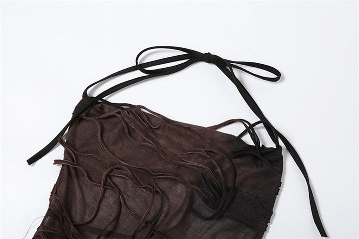 Halter backless tie dye ruffle mini dress