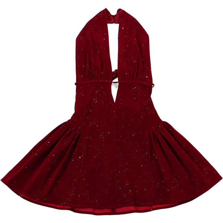 Halter deep v neck backless glitter mini dress