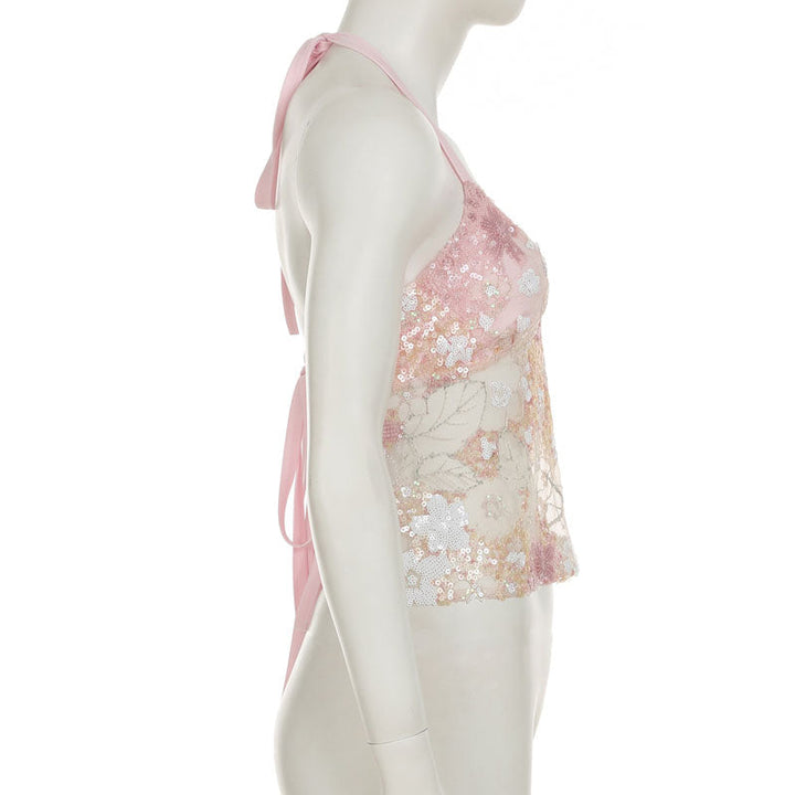 Halter self tie glitter v neck backless top