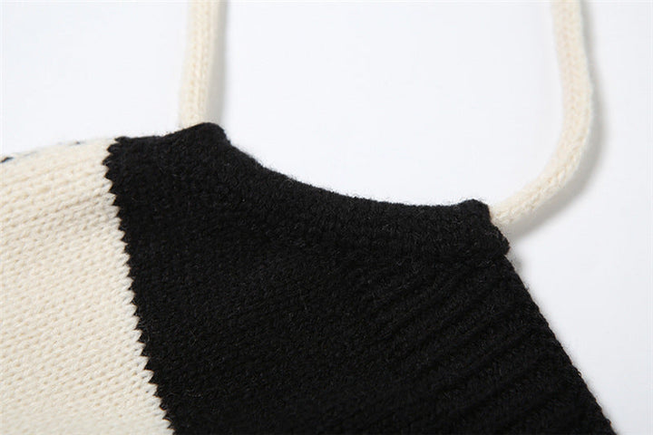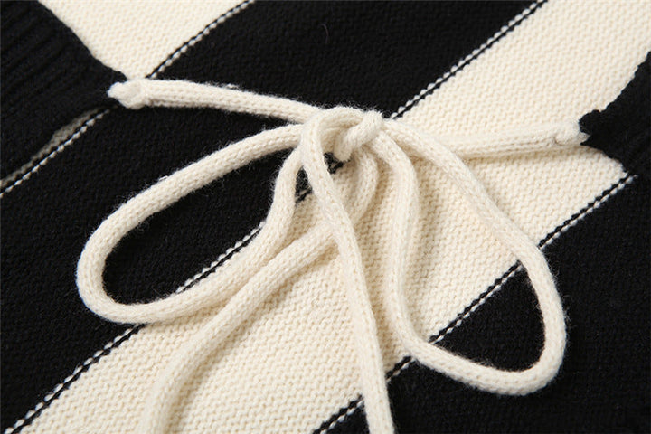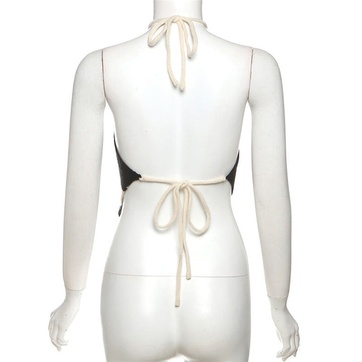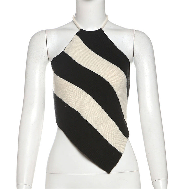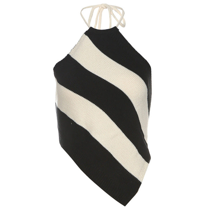 Halter striped self tie backless top