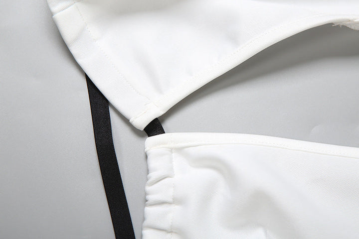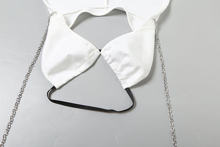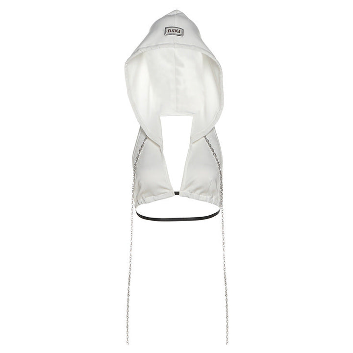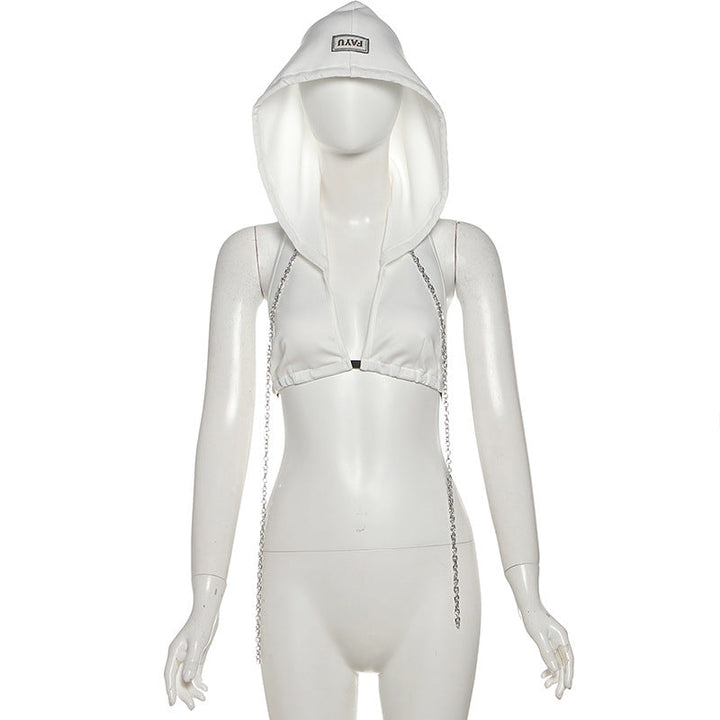 Hoodie metal chain v neck backless crop top