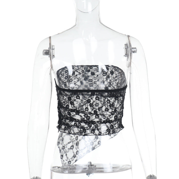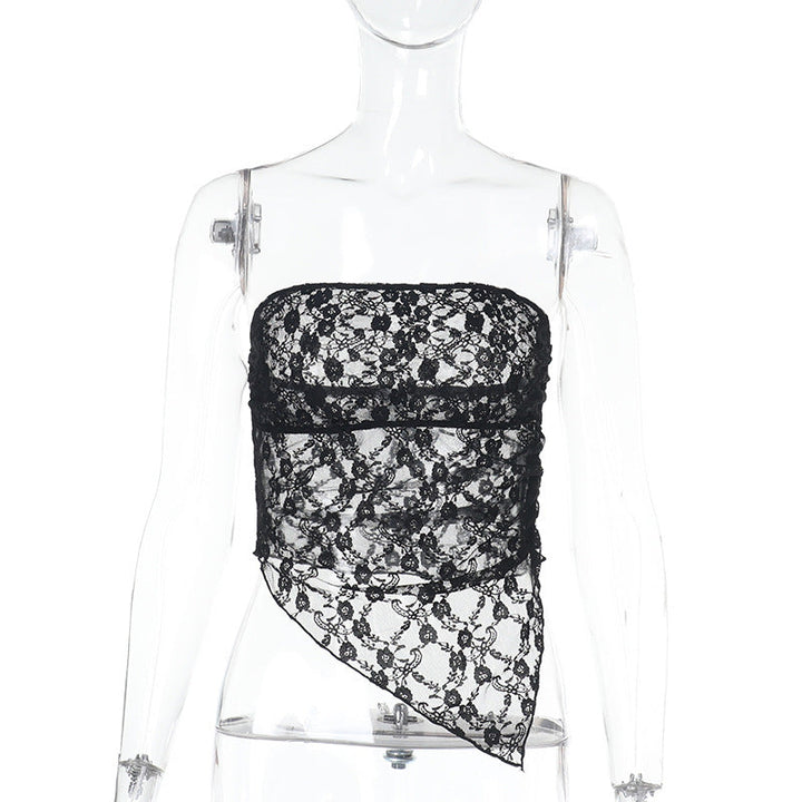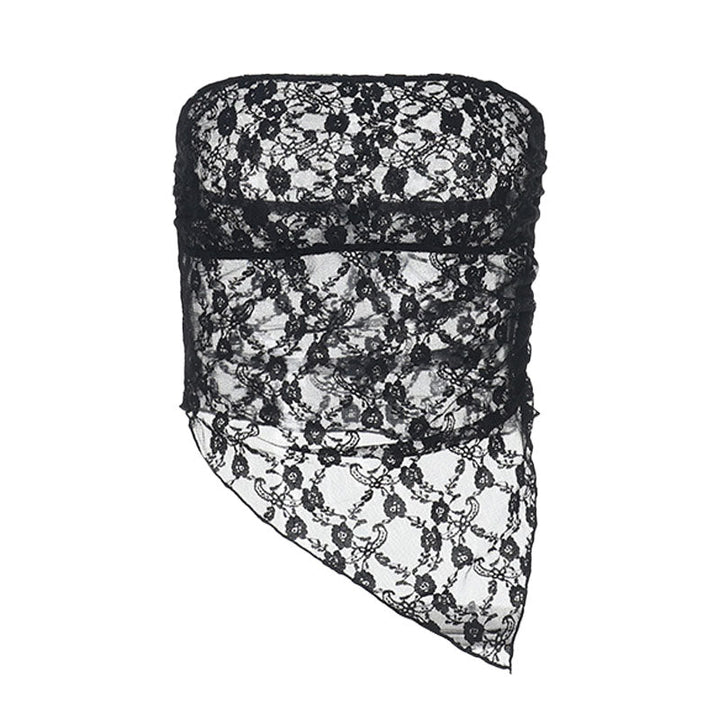 Irregular lace see through solid tube top