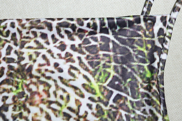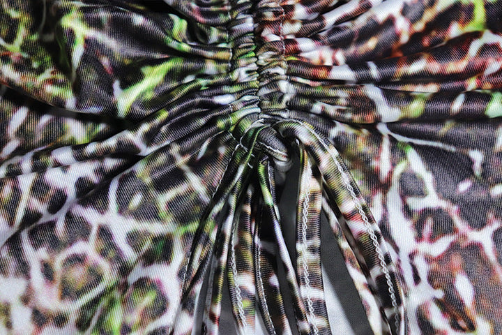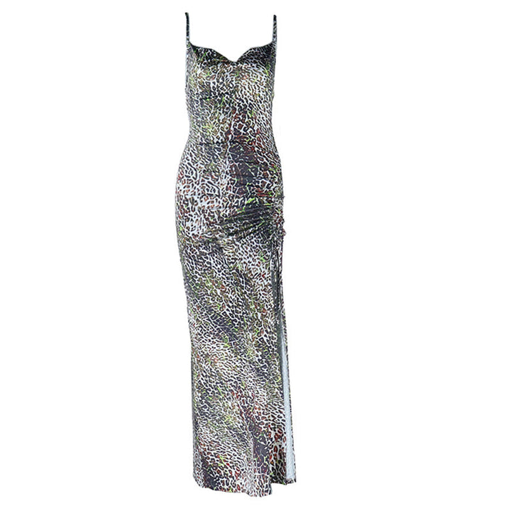 Leopard print slit ruched cami maxi dress