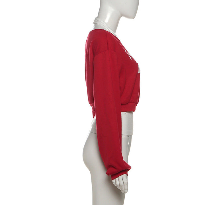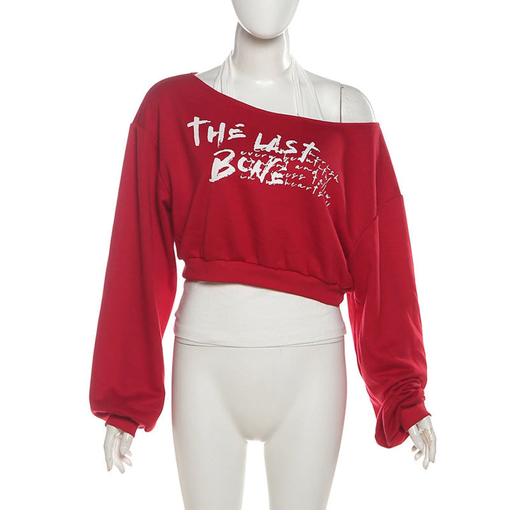 Long sleeve halter letter print top