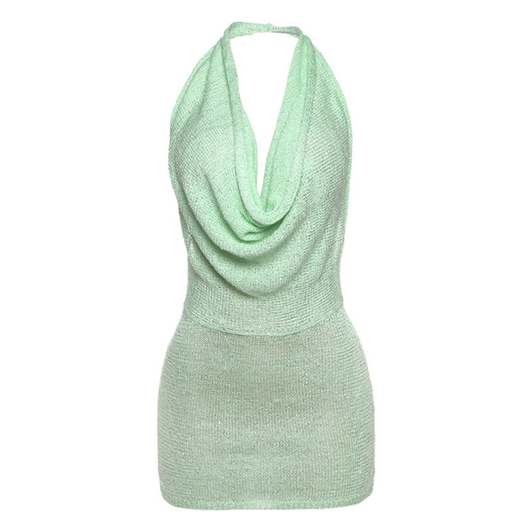 Halter deep v neck backless self tie mini dress