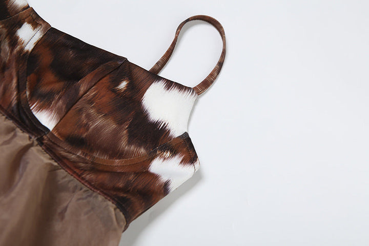 Ruched u neck print backless cami mini dress