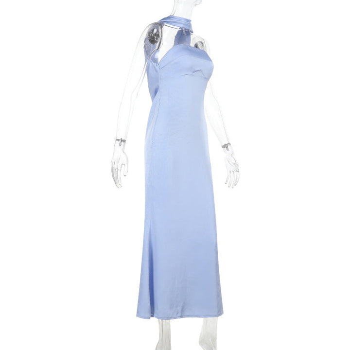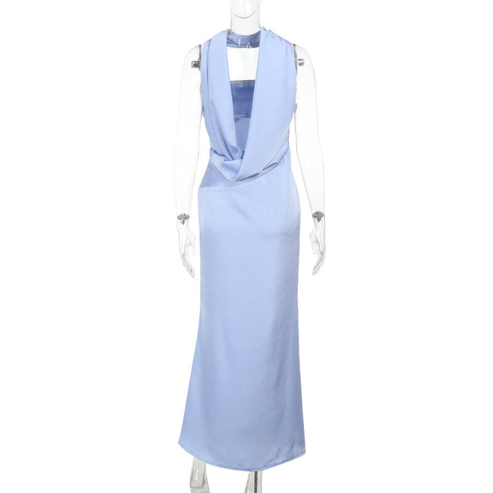 Satin zip-up solid tube maxi dress