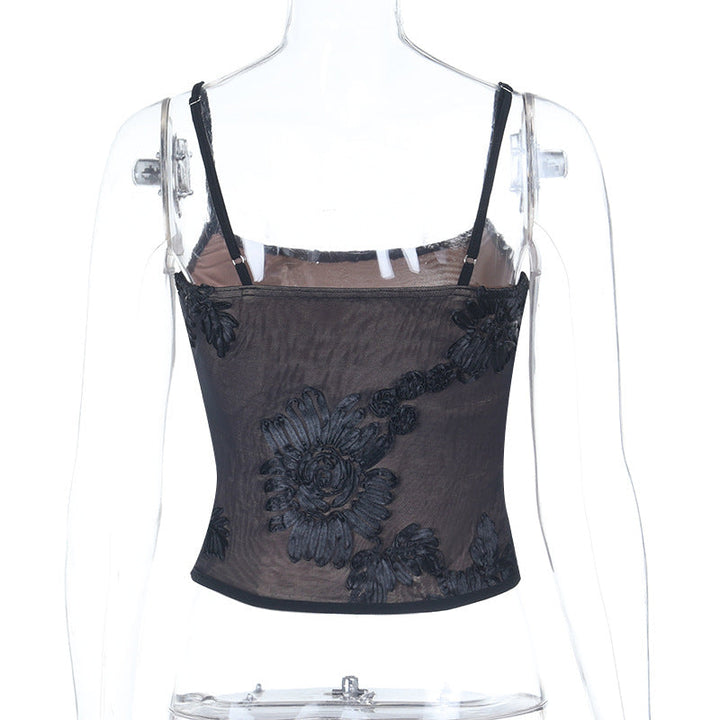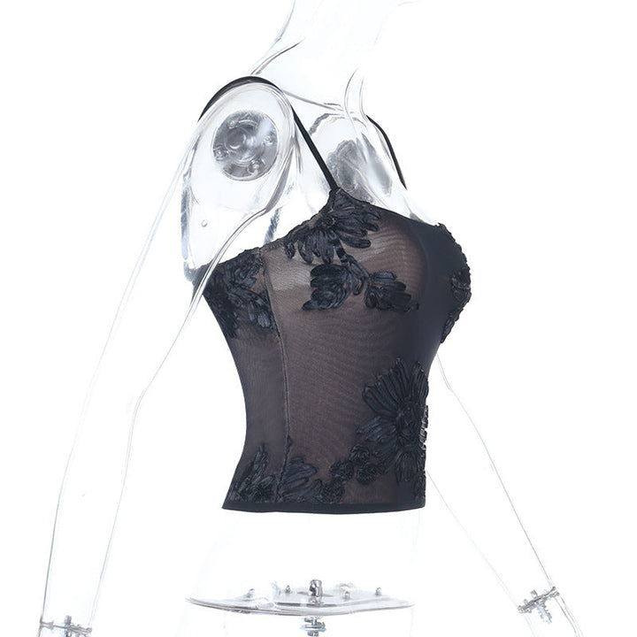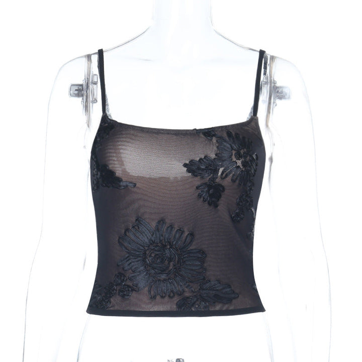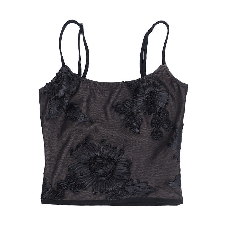 U neck flower pattern mesh cami top