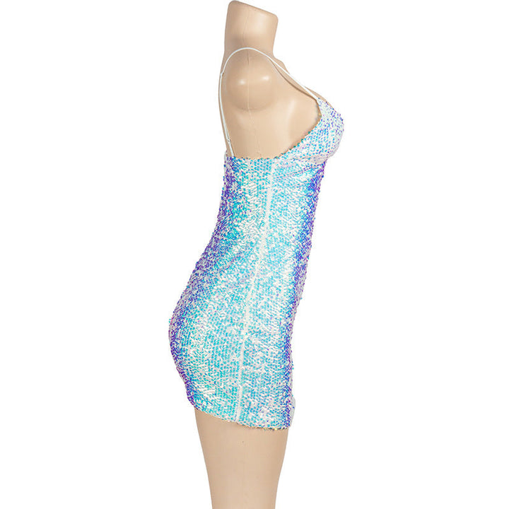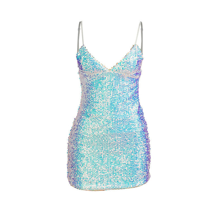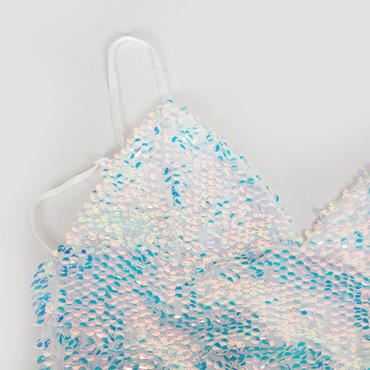 V neck glitter cami mini dress
