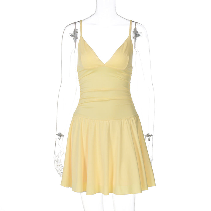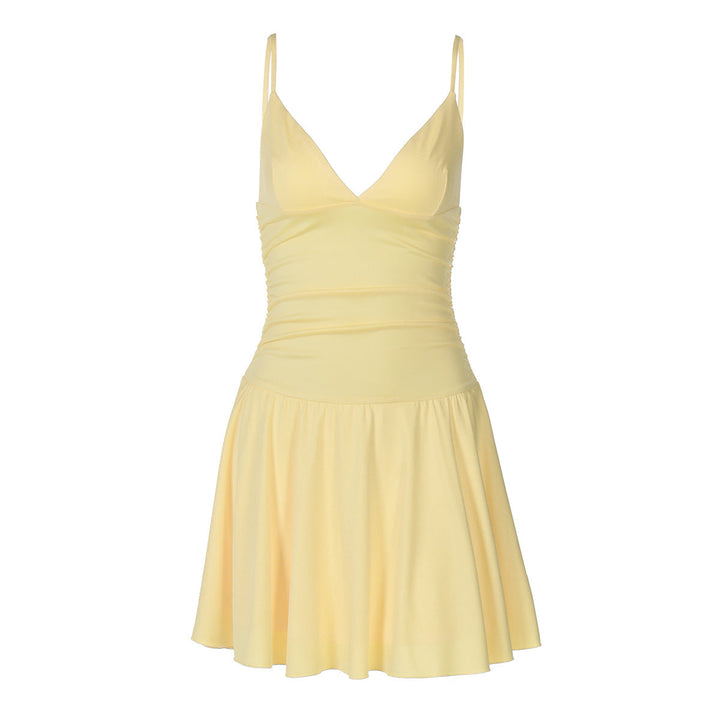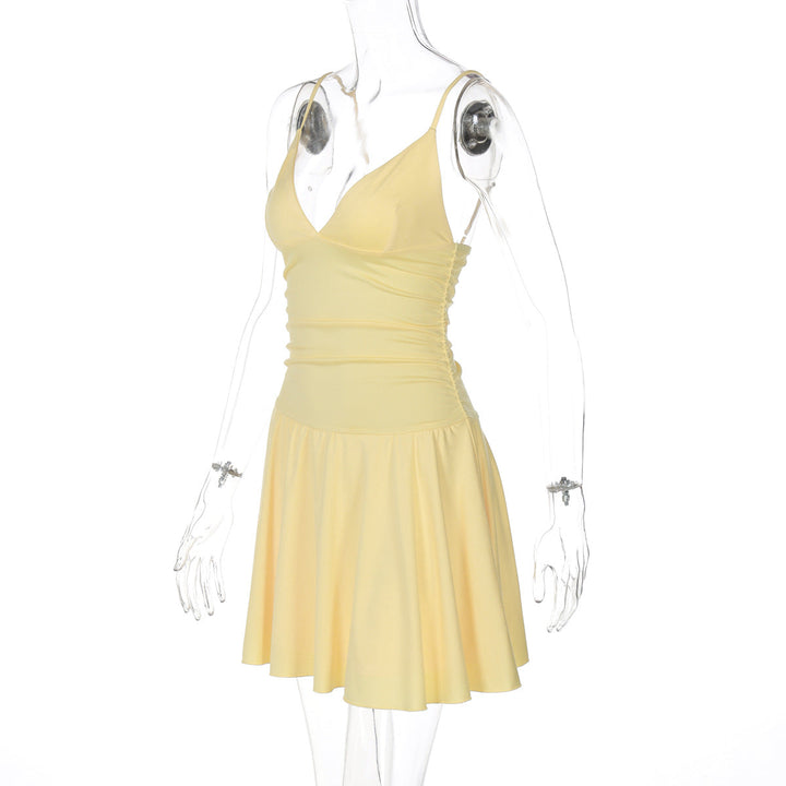 V neck ruched backless cami solid mini dress