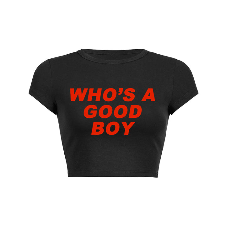 Who's a Good Boy Crop Top Baby Tee