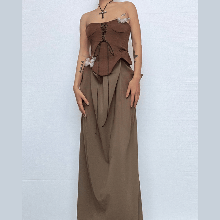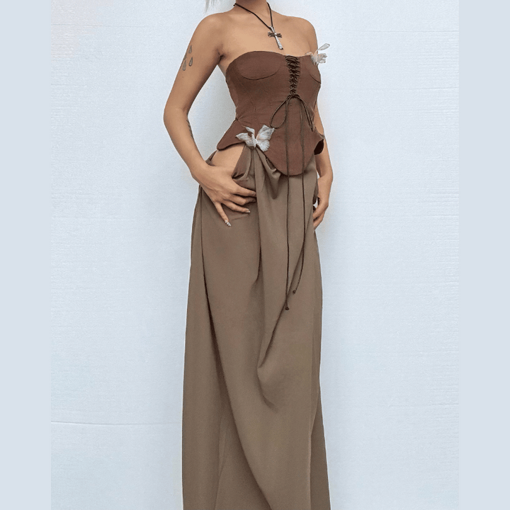Butterfly applique hollow out corset tube dress