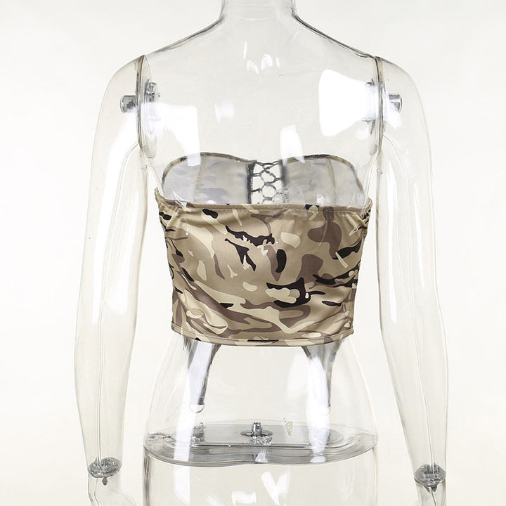 Camouflage lace up zip up tube top