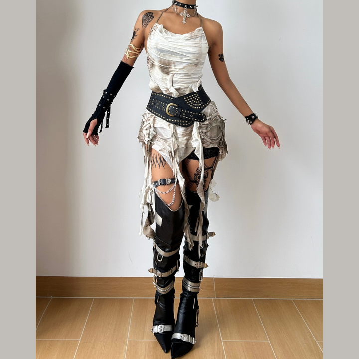 カウルネック フーディー タイダイ イレギュラー ミニドレス