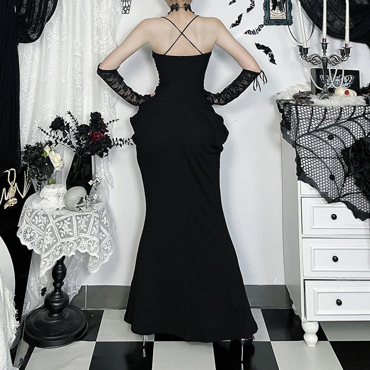 Cross back lace hem v neck ruched maxi dress