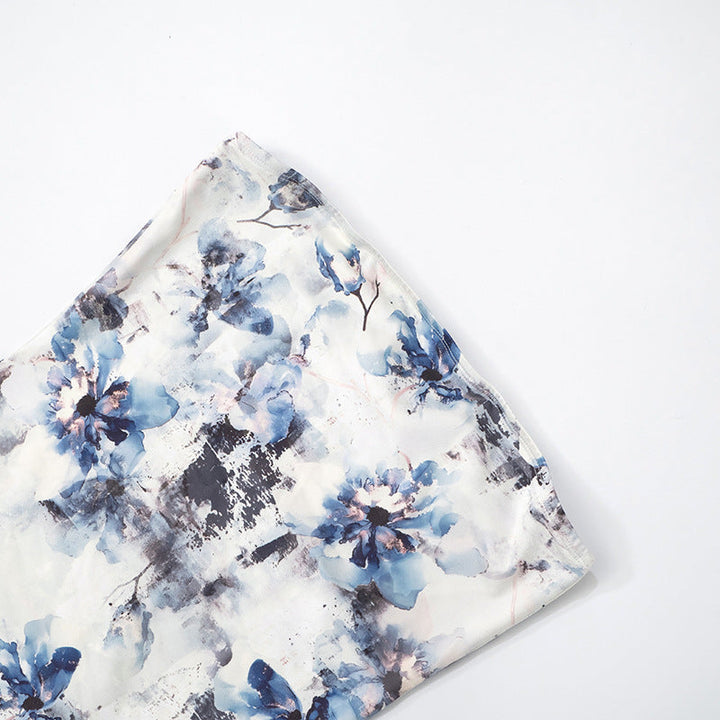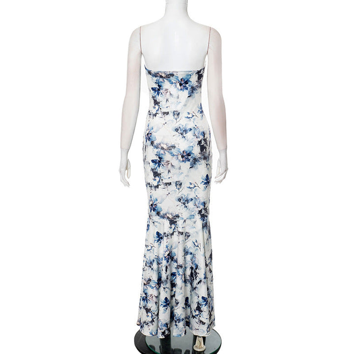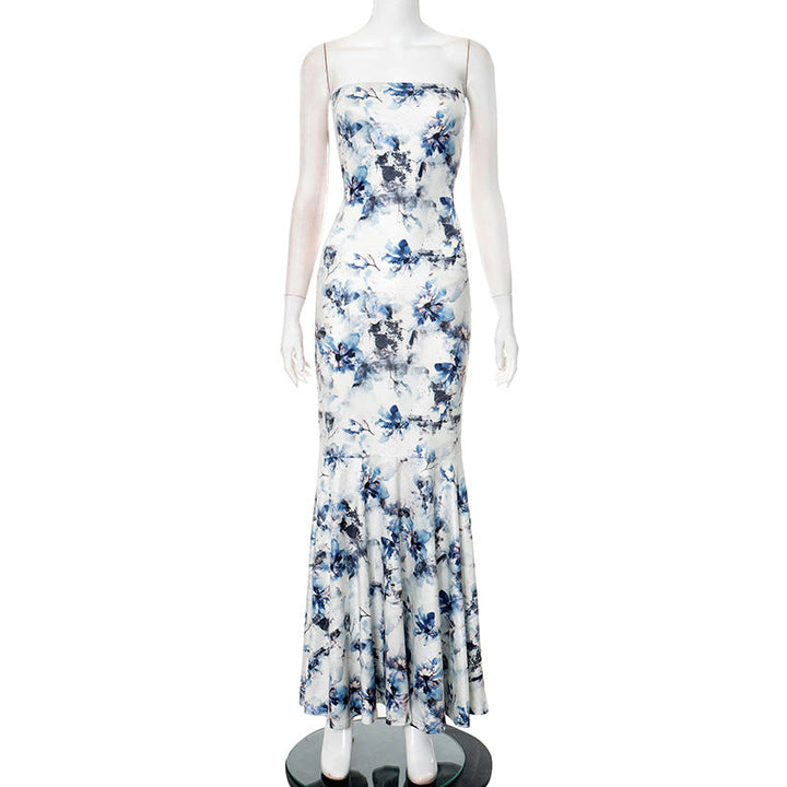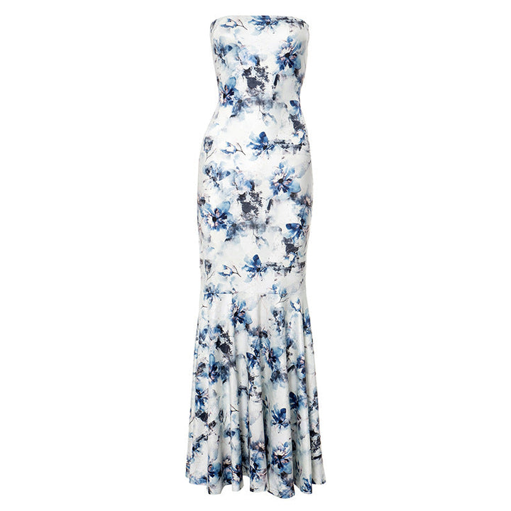 Flower print ruched ruffle tube maxi dress