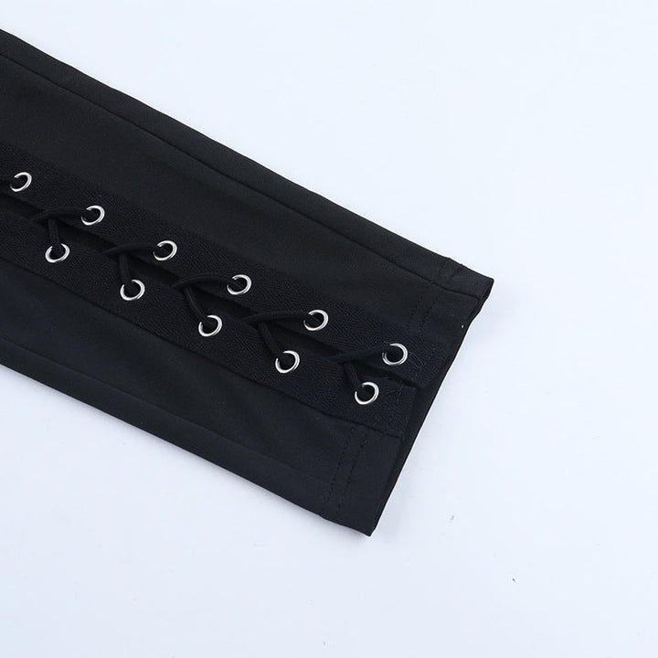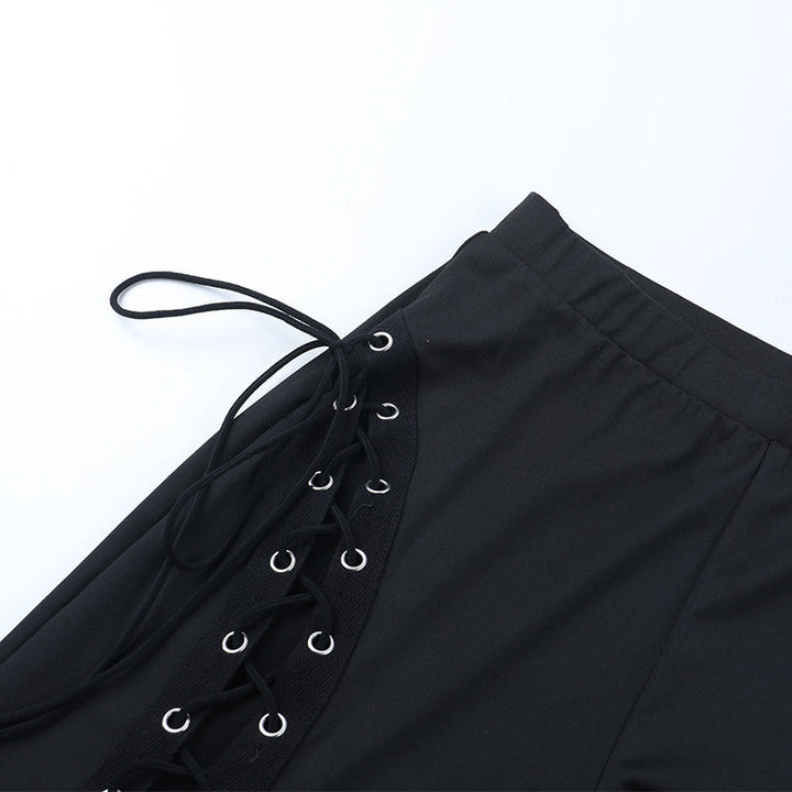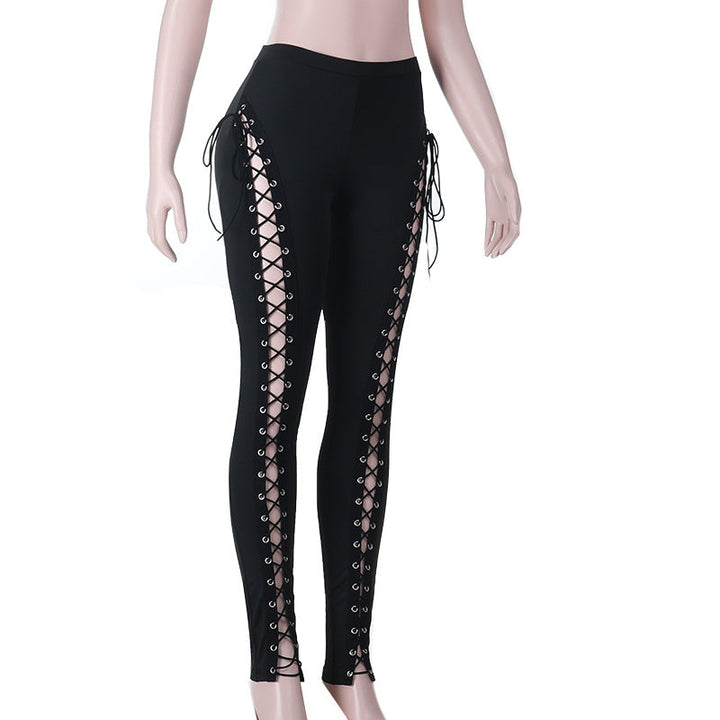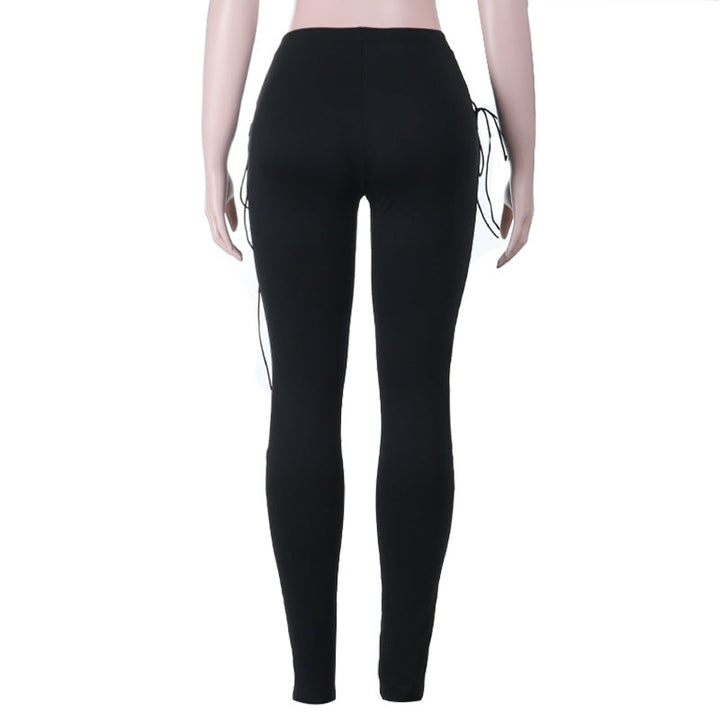 Lace up hollow out self tie pant