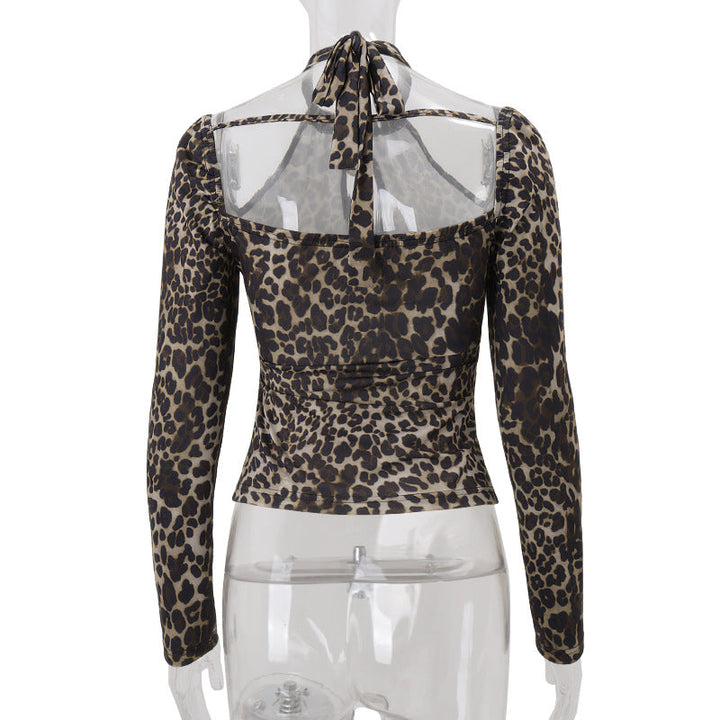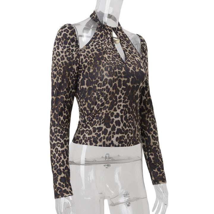 Leopard print hollow out halter top