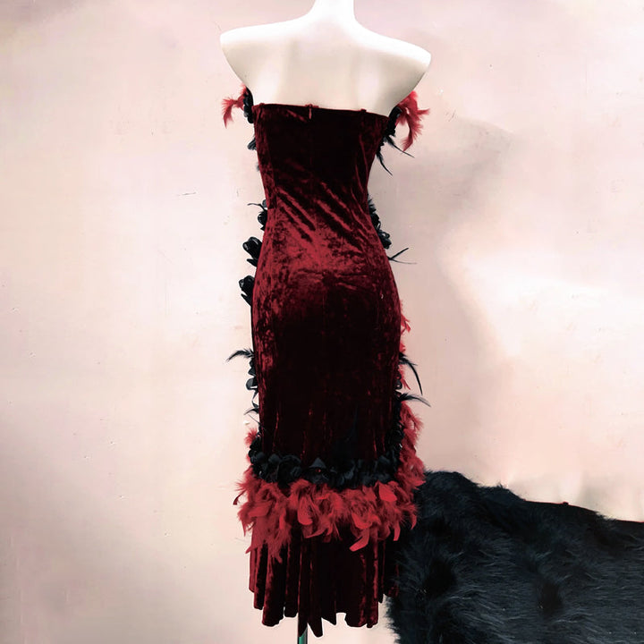 Long flared sleeve flower applique 2 piece midi dress