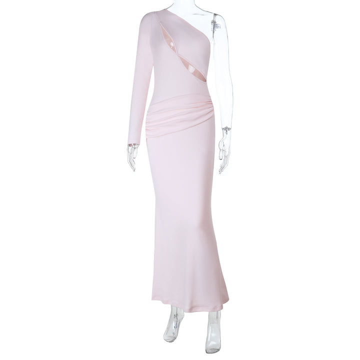 Long sleeve one shoulder hollow out ruched maxi dress