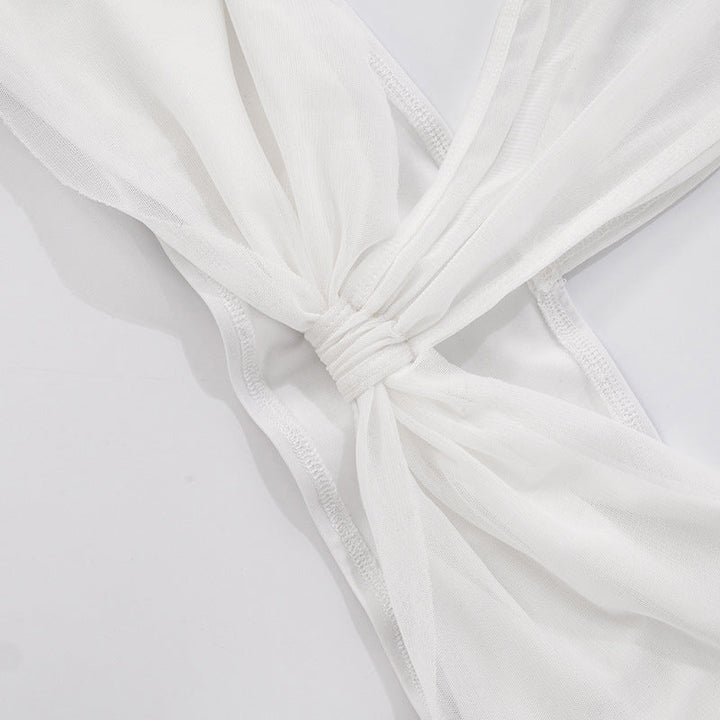 One shoulder irregular mesh knotted pant set