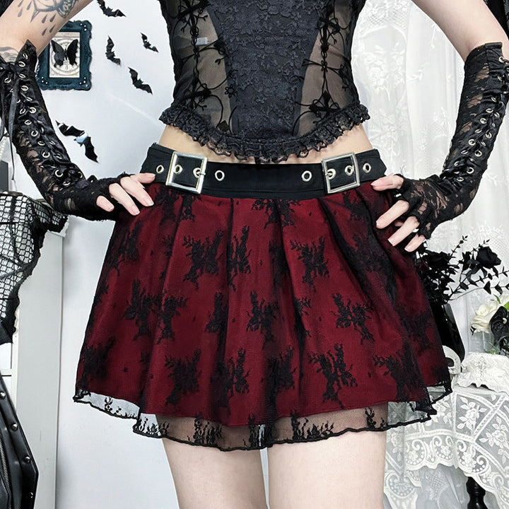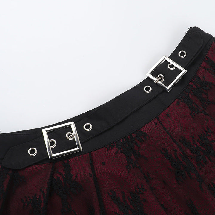 Pleated lace buckle mini skirt