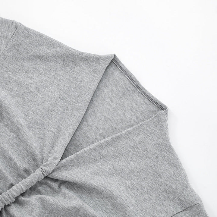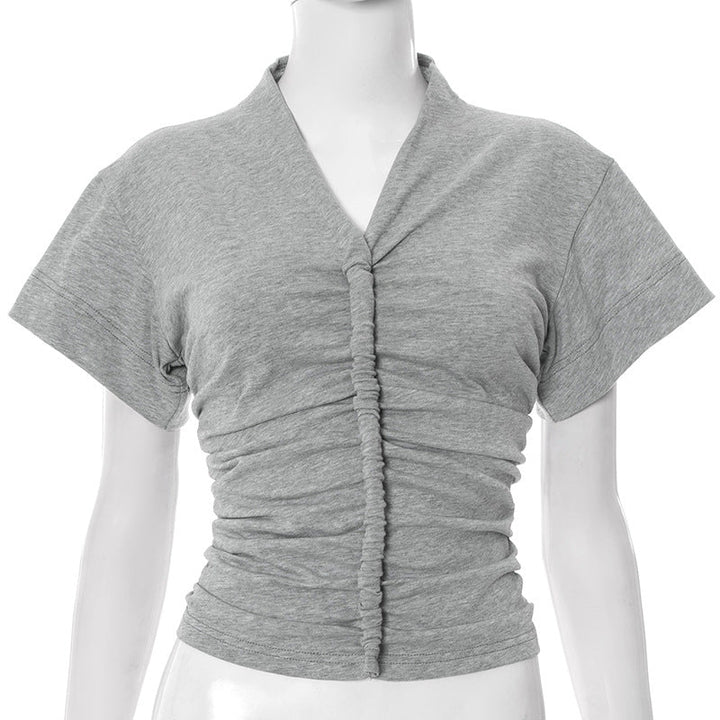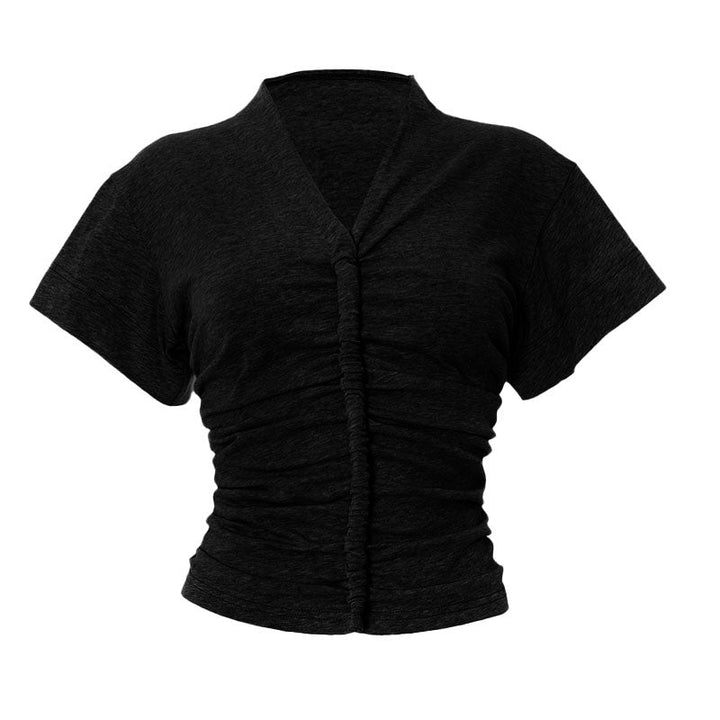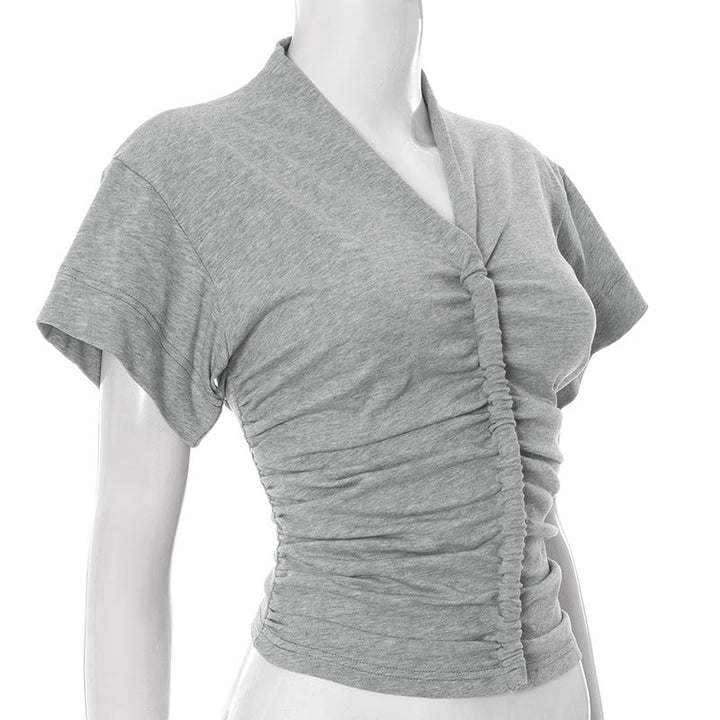 Ruched v neck short sleeve solid top
