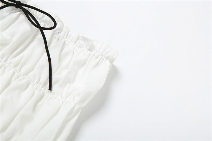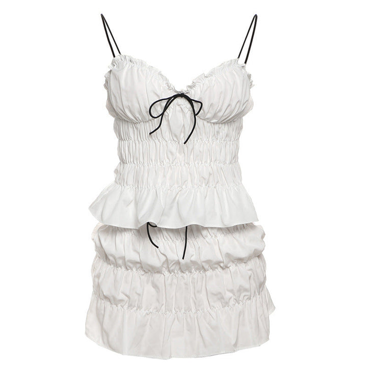 Ruffle v neck ruched spaghetti strap mini skirt set