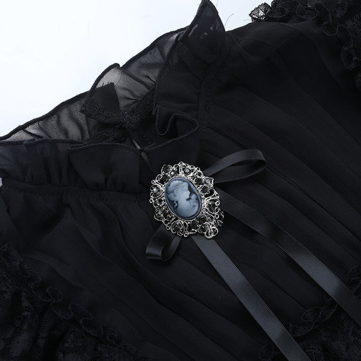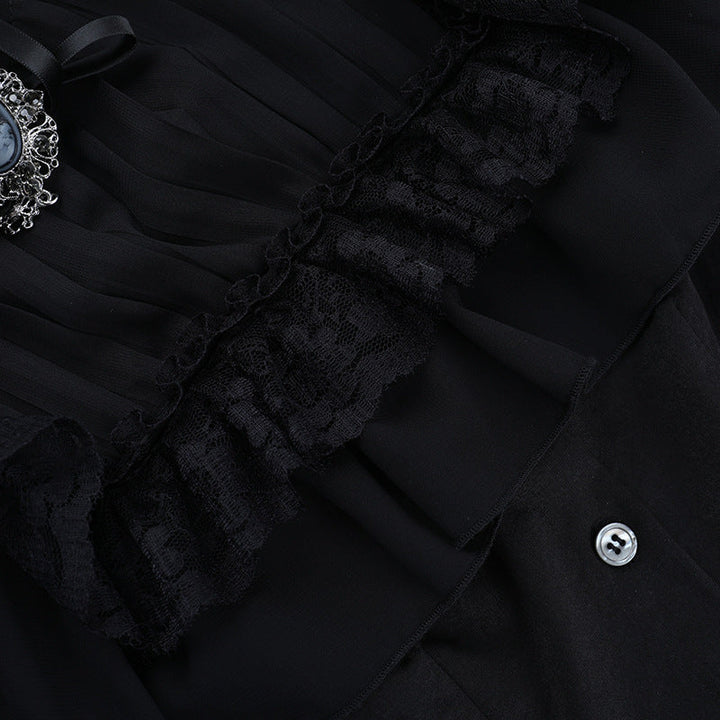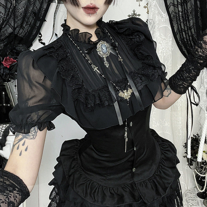 Short sleeve button ruffle lace hem solid top