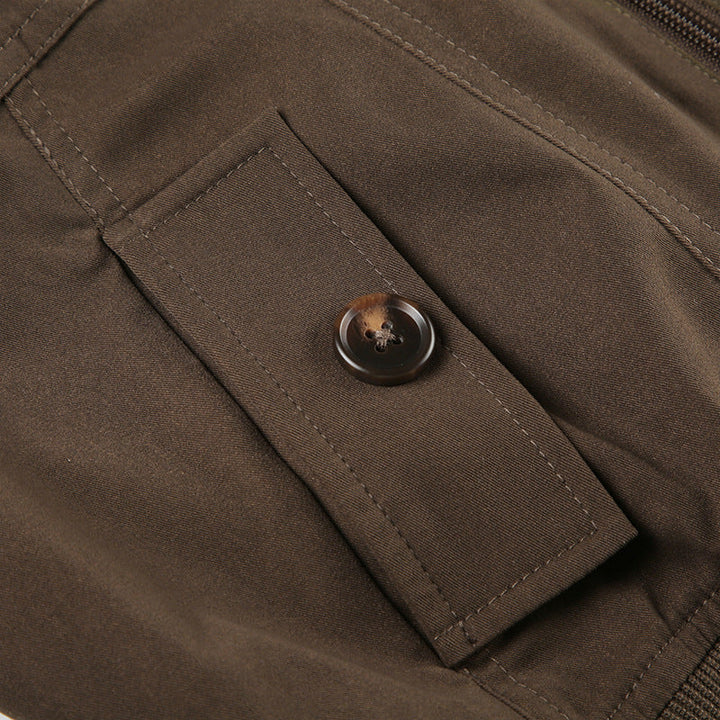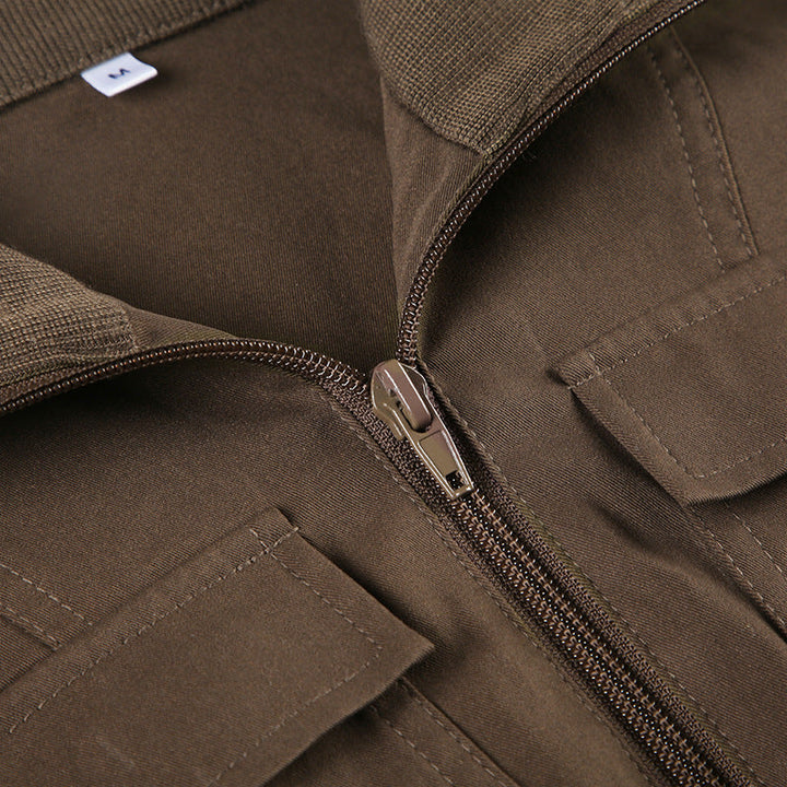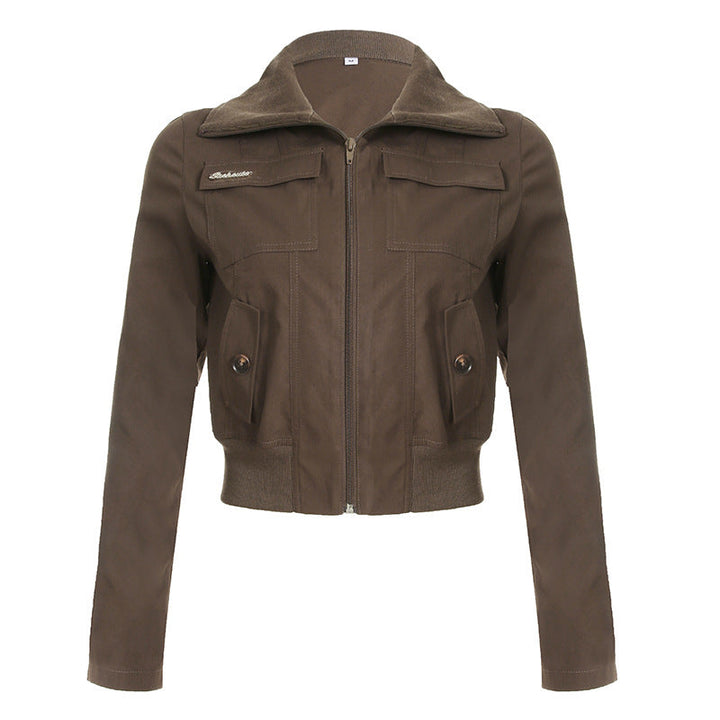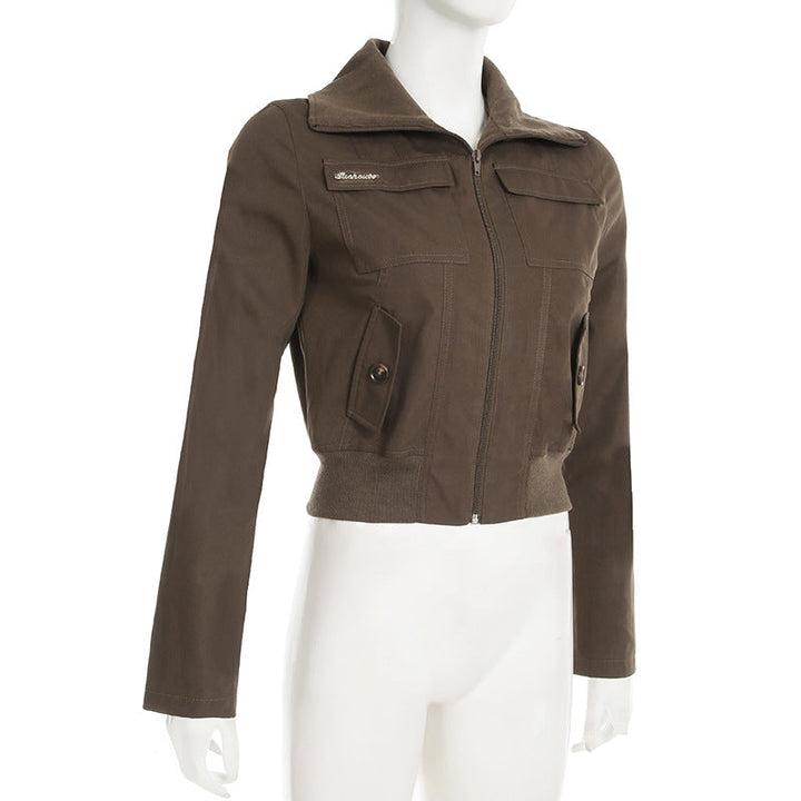 Turnover collar long sleeve zip-up pocket top